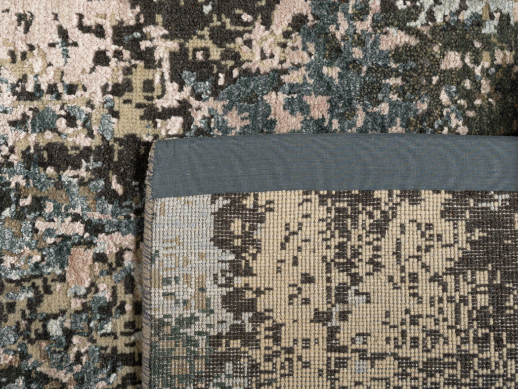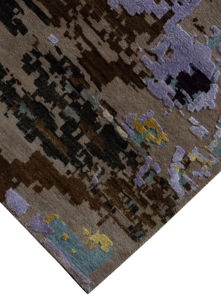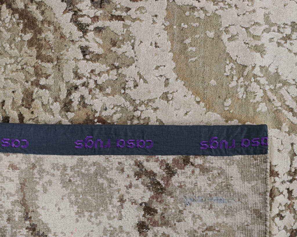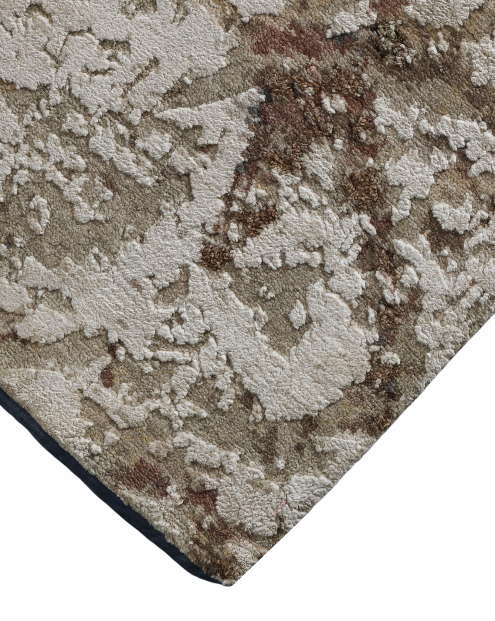 The modern rug is hand-knotted by artisans in a nice blend of wool and pure silk. New Zealand wool is the most durable material, but pure silk gives luxurious shine, softness and structural effect. All yarns have been dyed separately by dying master.