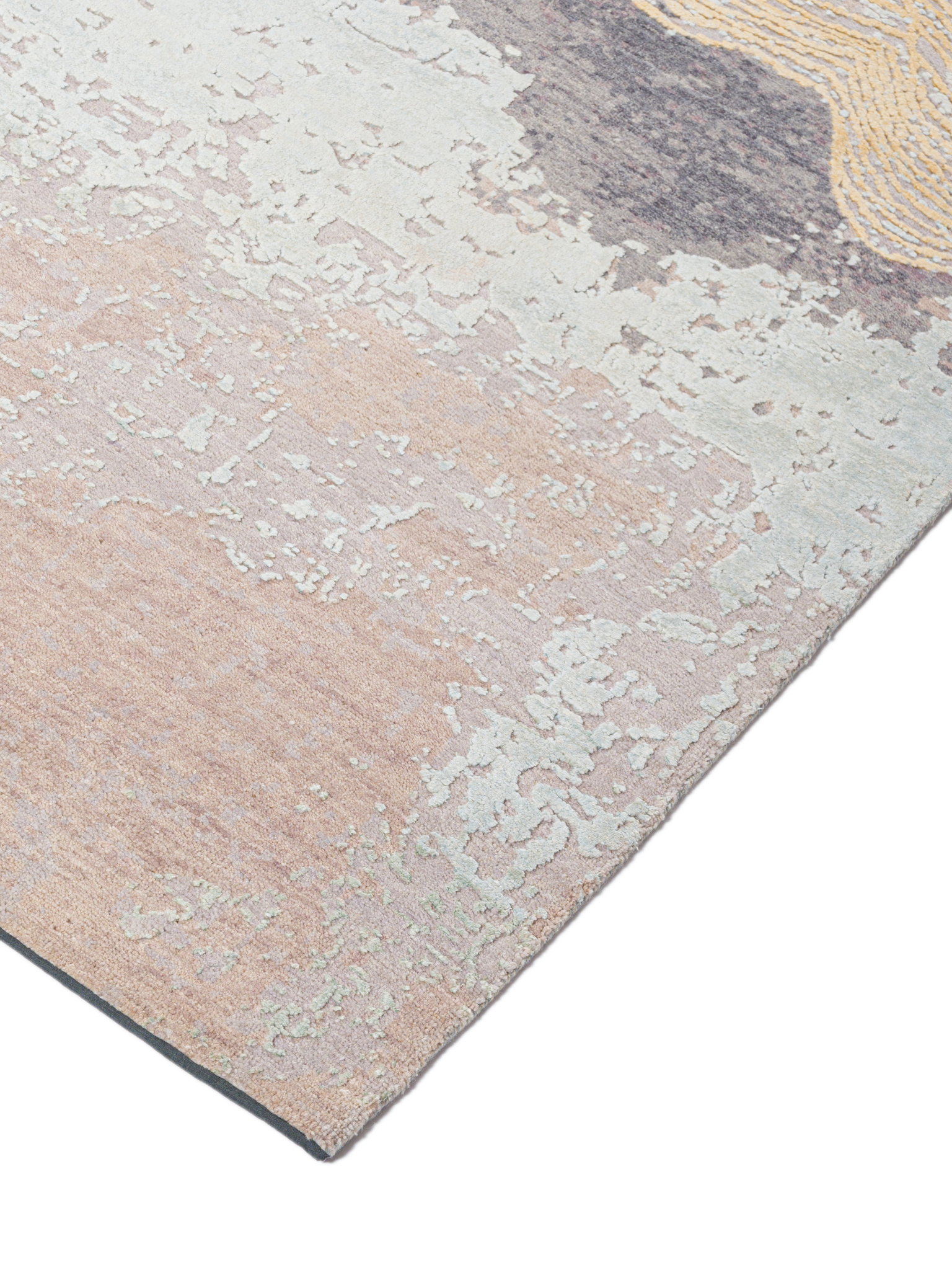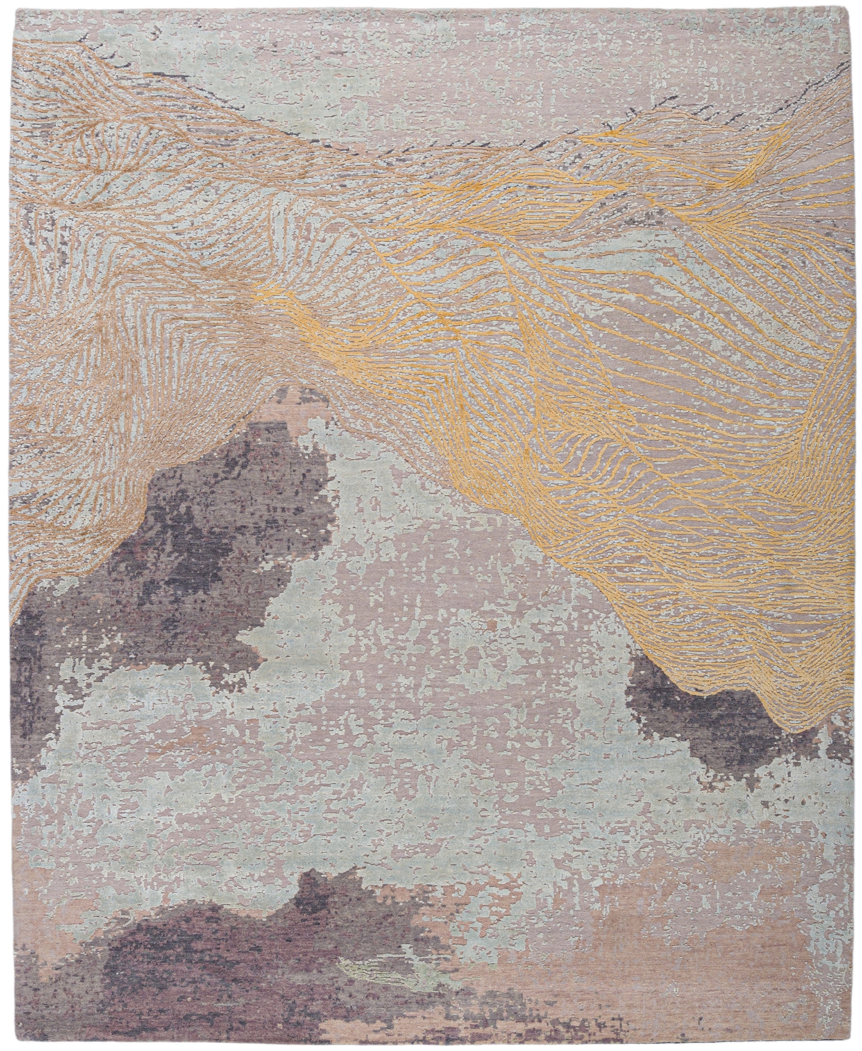 The modern rug is hand-knotted by artisans in a nice blend of wool and pure silk. New Zealand wool is the most durable material, but pure silk gives luxurious shine, softness and structural effect. All yarns have been dyed separately by dying master.