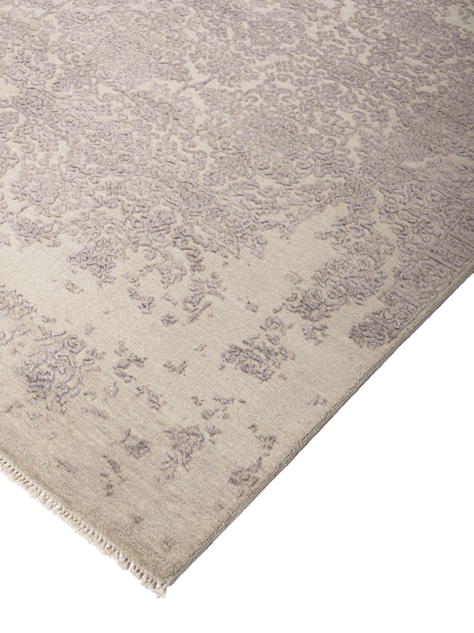 The contemporary classic rug is hand-knotted by artisans in a nice blend of wool and bamboo silk. New Zealand wool is the most durable material, but bamboo silk gives luxurious shine, softness and structural effect. All yarns have been dyed separately by dying master.