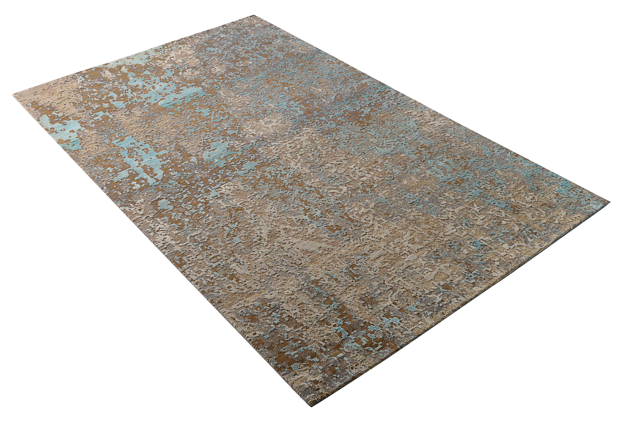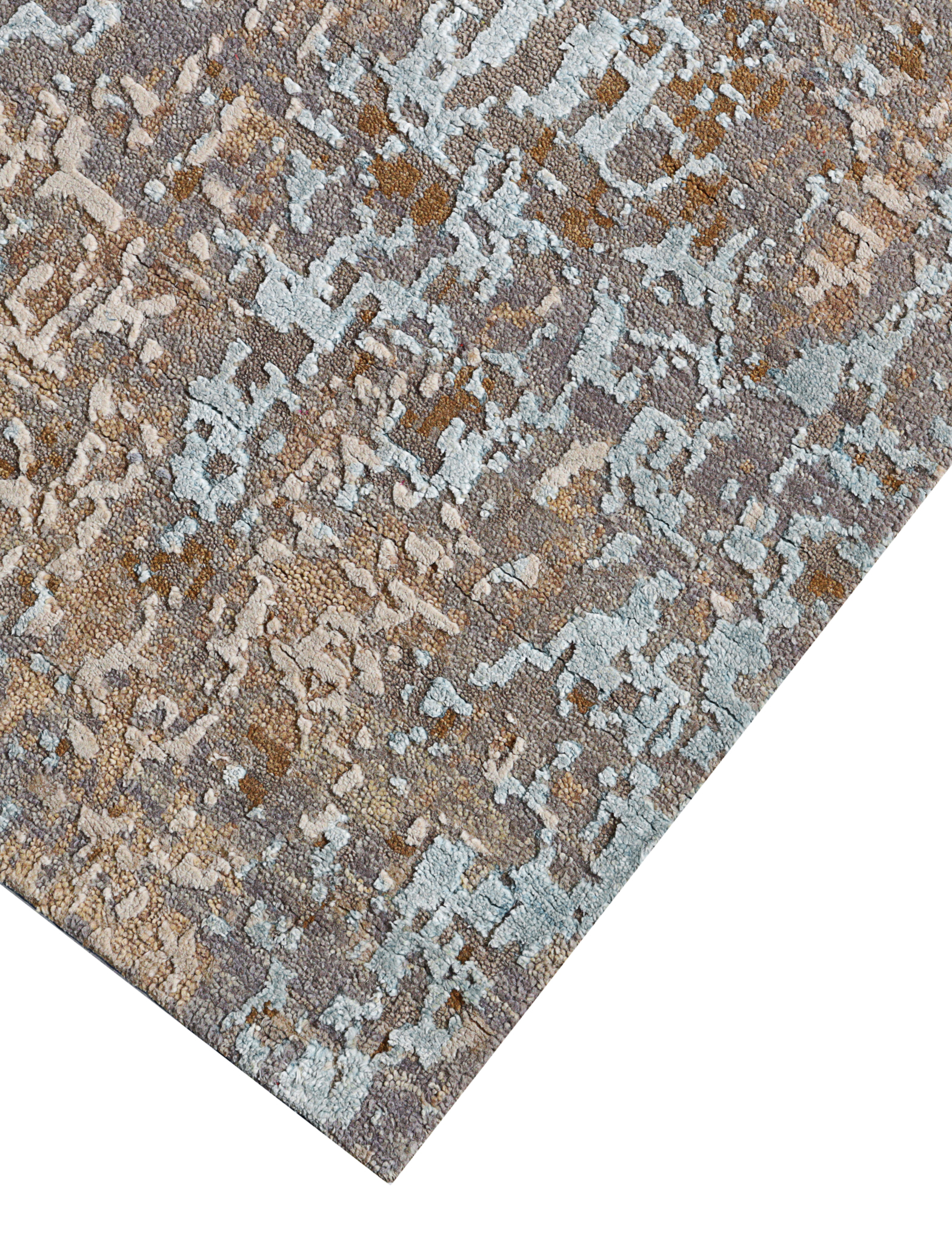 The modern rug is hand-knotted by artisans in a nice blend of wool and bamboo silk. New Zealand wool is the most durable material, but bamboo silk gives luxurious shine, softness and structural effect. All yarns have been dyed separately by dying master.
