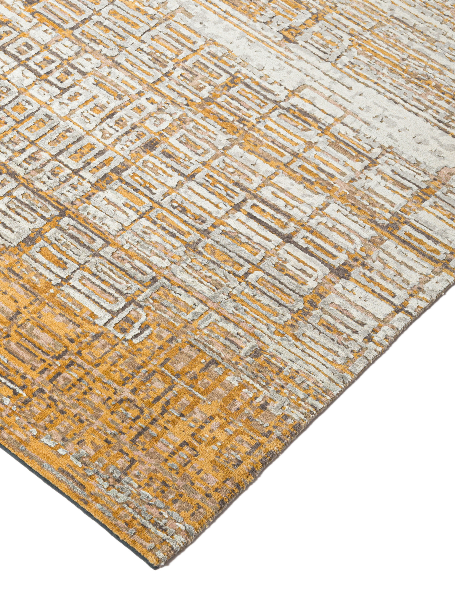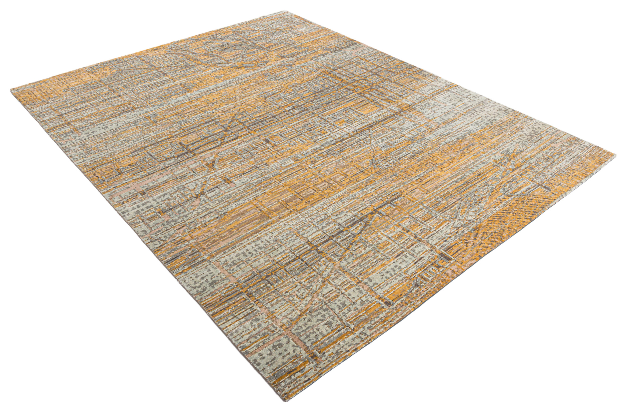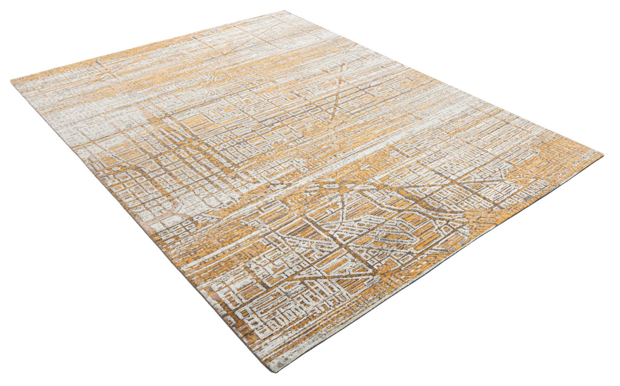The modern rug is hand-knotted by artisans in a nice blend of wool and pure silk. New Zealand wool is the most durable material, but pure silk gives luxurious shine, softness and structural effect. All yarns have been dyed separately by dying master.