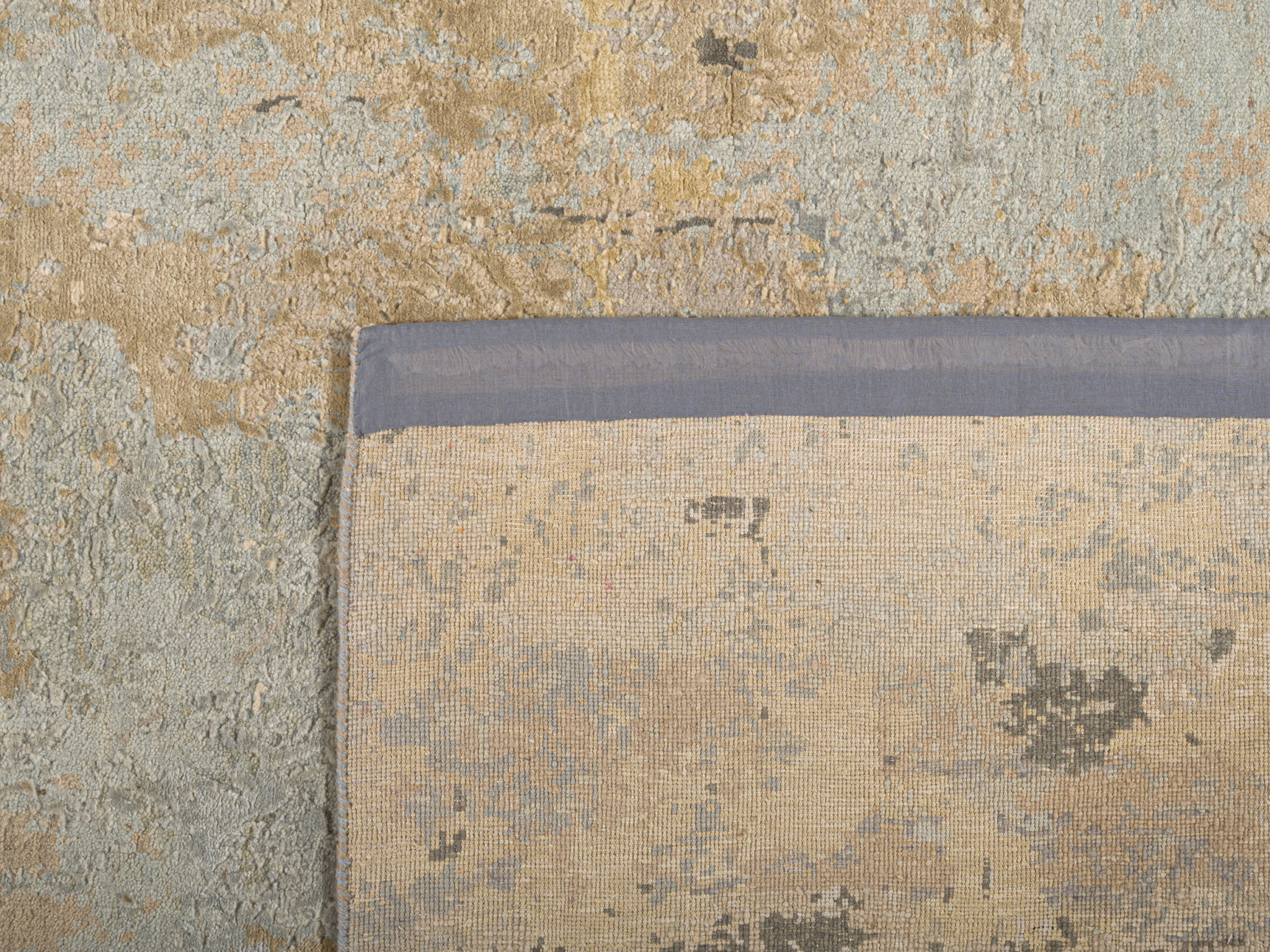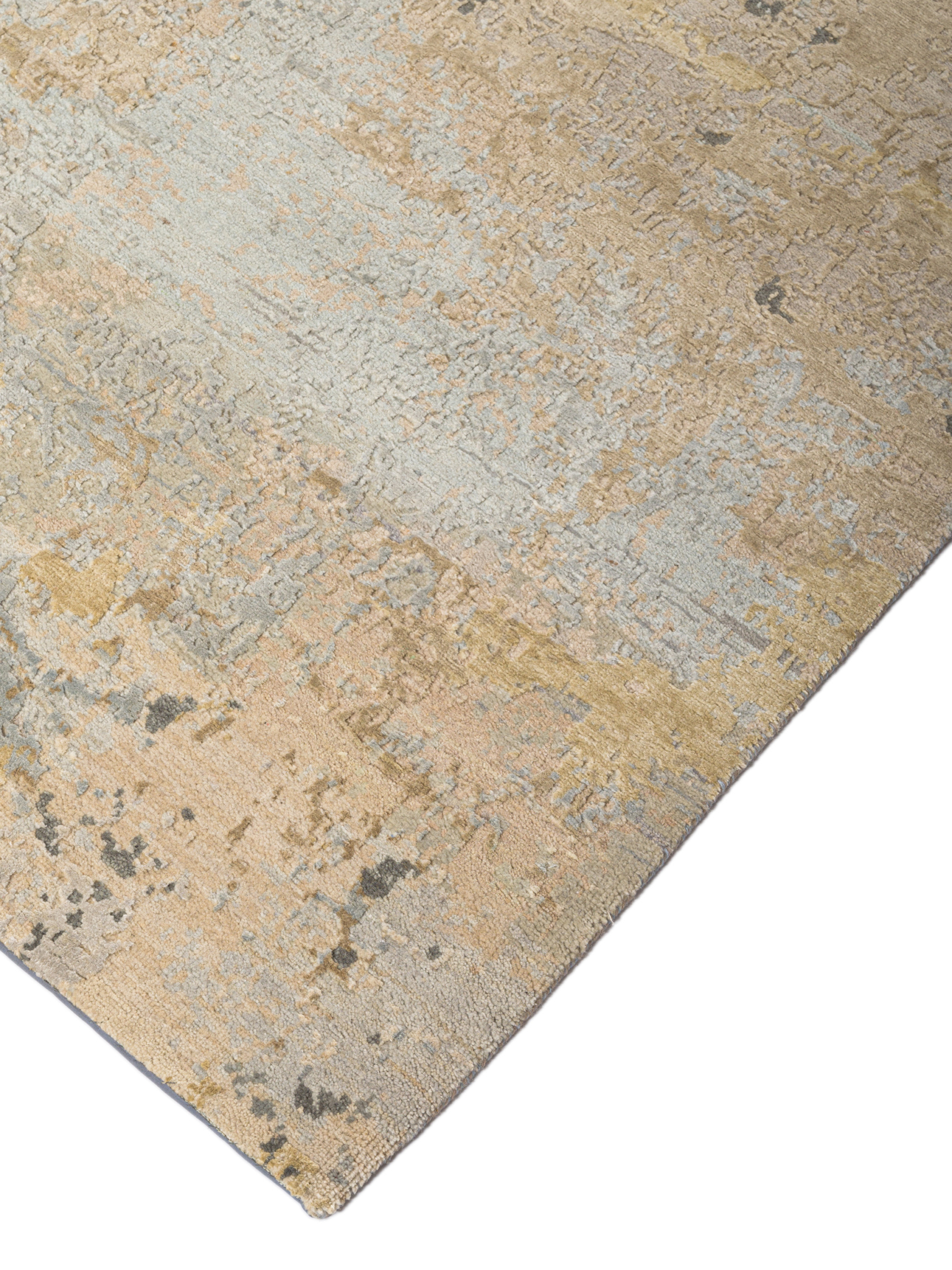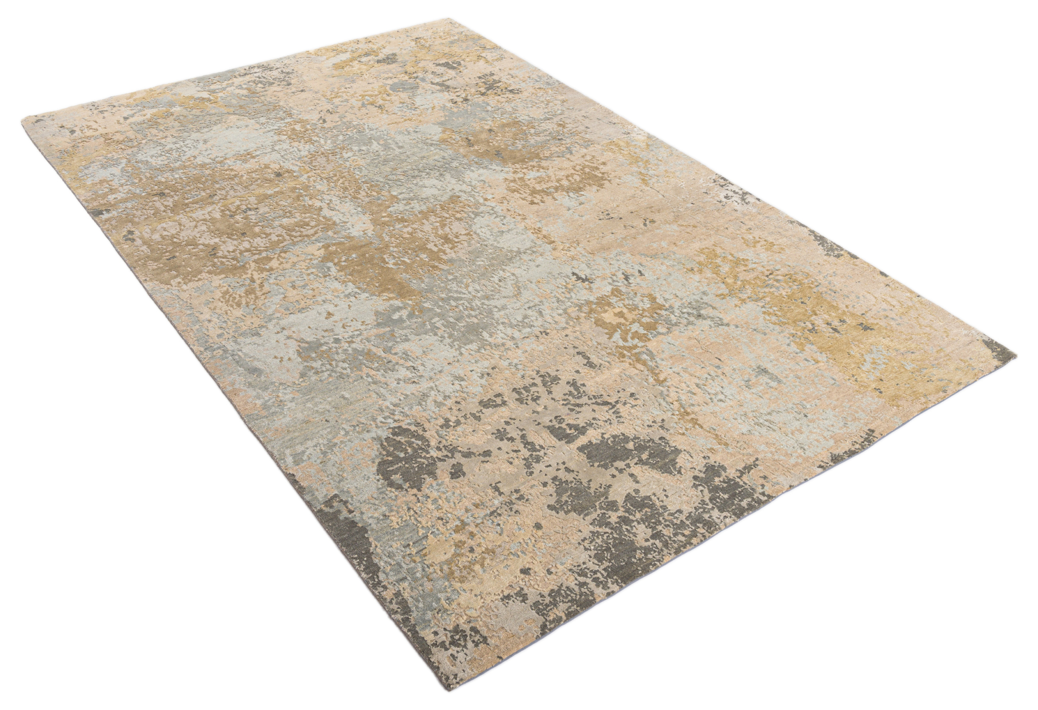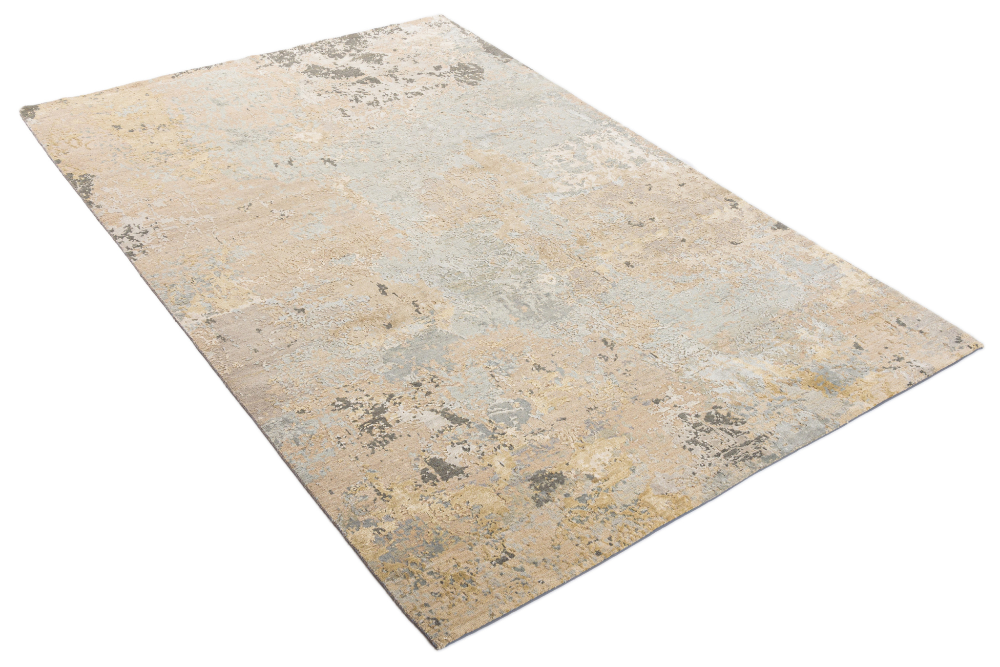 The modern rug is hand-knotted by artisans in a nice blend of wool and bamboo silk. New Zealand wool is the most durable material, but bamboo silk gives luxurious shine, softness and structural effect. All yarns have been dyed separately by dying master.