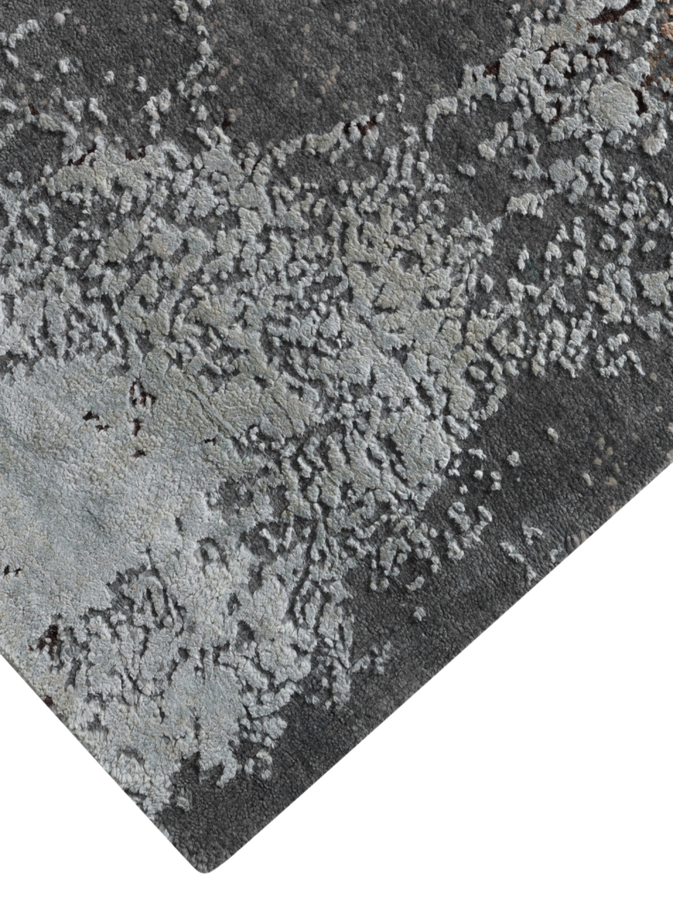 The modern rug is hand-knotted by artisans in a nice blend of wool and pure silk. New Zealand wool is the most durable material, but pure silk gives luxurious shine, softness and structural effect. All yarns have been dyed separately by dying master.