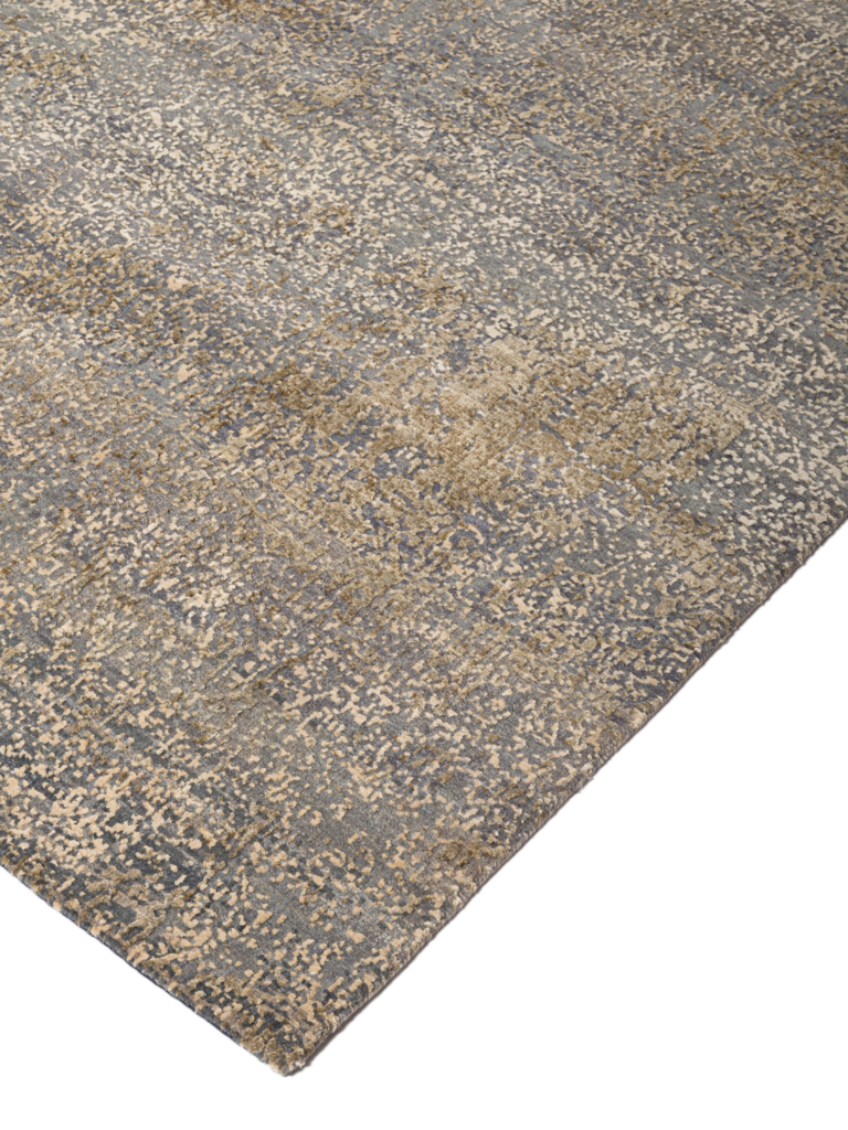 The modern rug is hand-knotted by artisans in a nice blend of wool and pure silk. New Zealand wool is the most durable material, but pure silk gives luxurious shine, softness and structural effect. All yarns have been dyed separately by dying master.