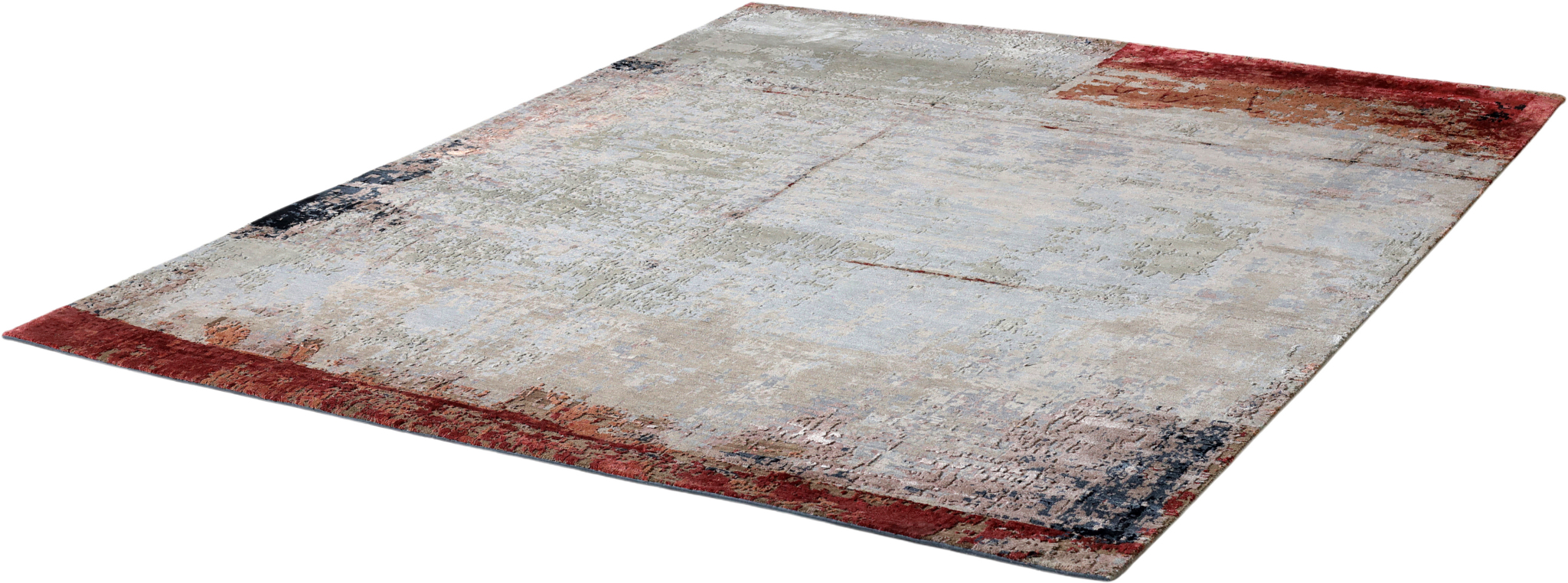 The modern rug is hand-knotted by artisans in a nice blend of wool and pure silk. New Zealand wool is the most durable material, but pure silk gives luxurious shine, softness and structural effect. All yarns have been dyed separately by dying master.