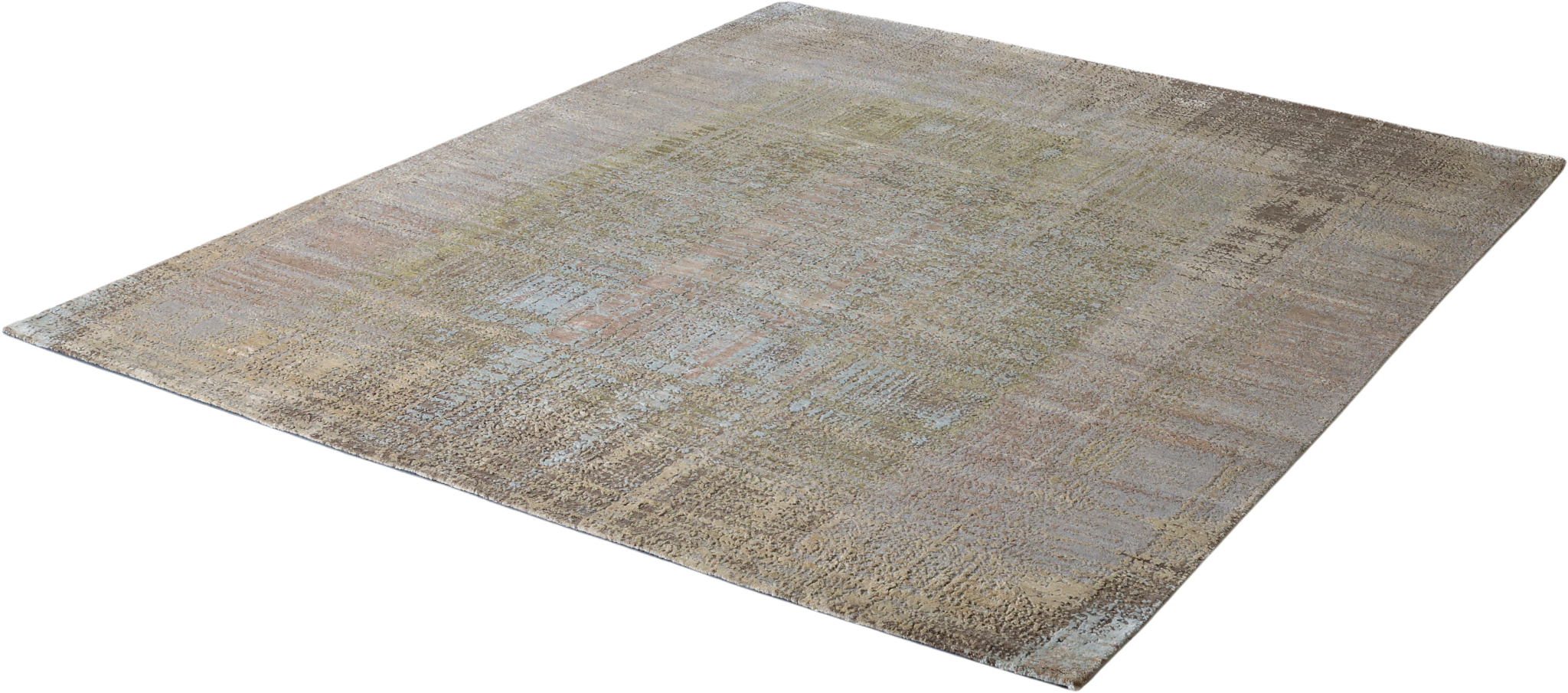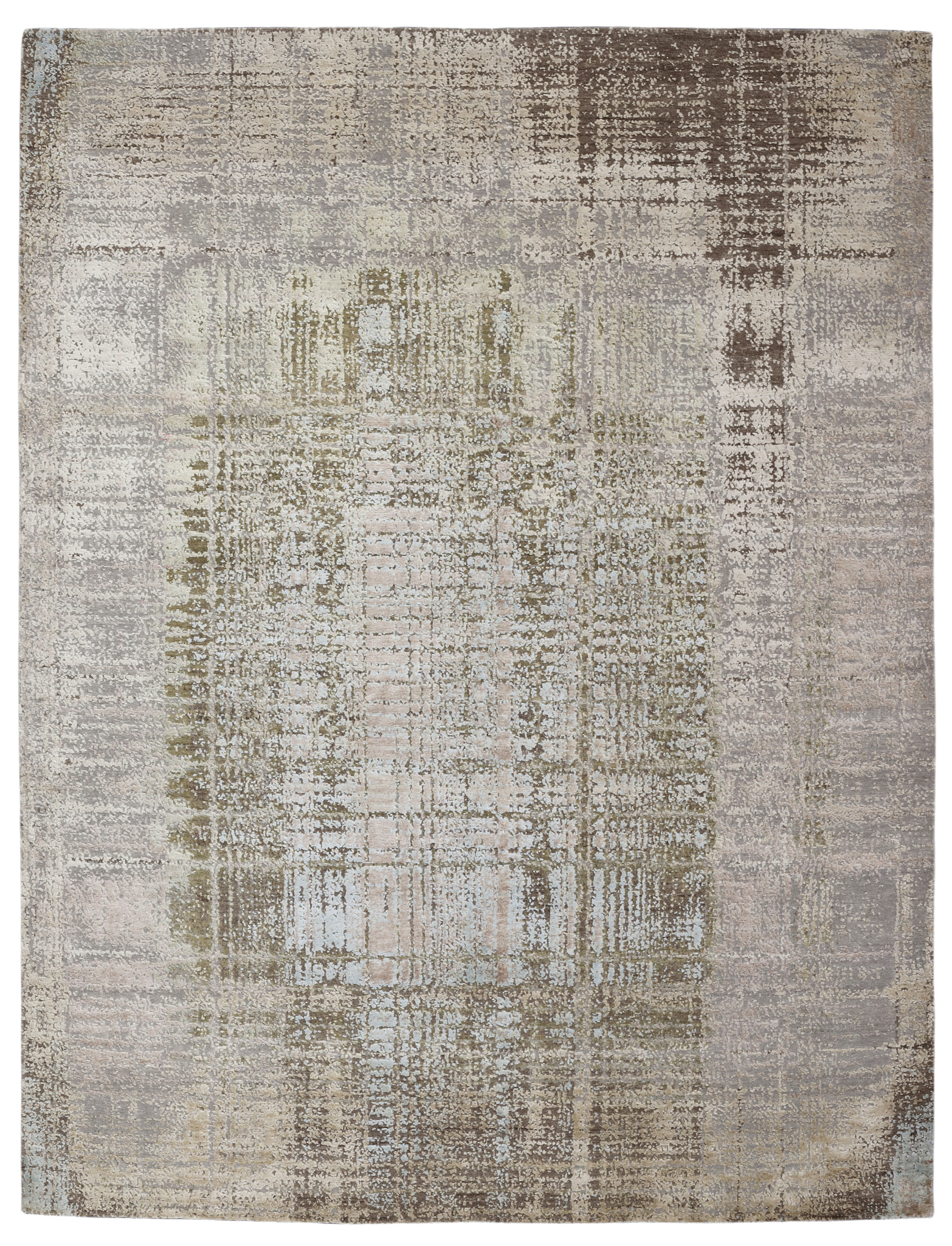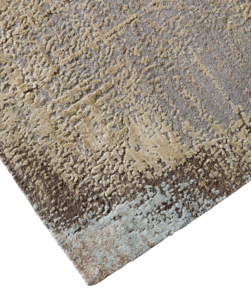 The modern rug is hand-knotted by artisans in a nice blend of wool and pure silk. New Zealand wool is the most durable material, but pure silk gives luxurious shine, softness and structural effect. All yarns have been dyed separately by dying master.