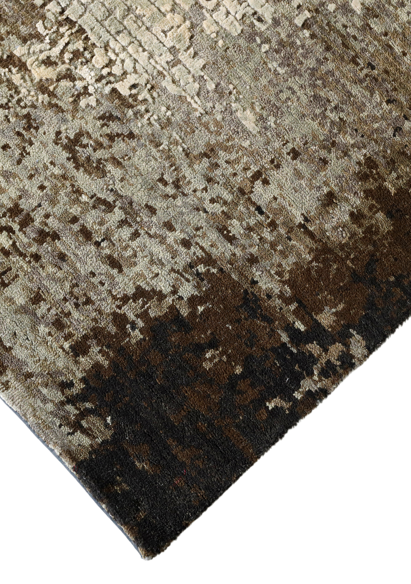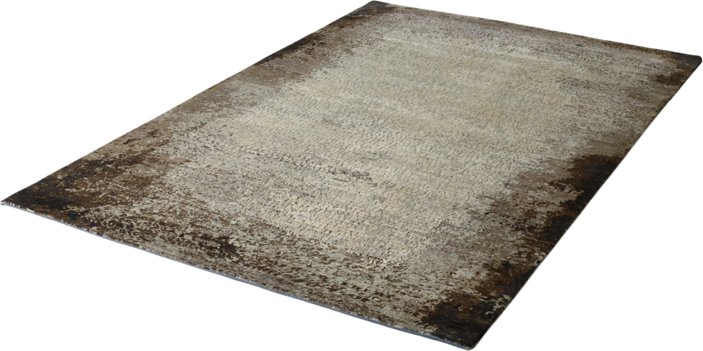 The modern rug is hand-knotted by artisans in a nice blend of wool and pure silk. New Zealand wool is the most durable material, but pure silk gives luxurious shine, softness and structural effect. All yarns have been dyed separately by dying master.