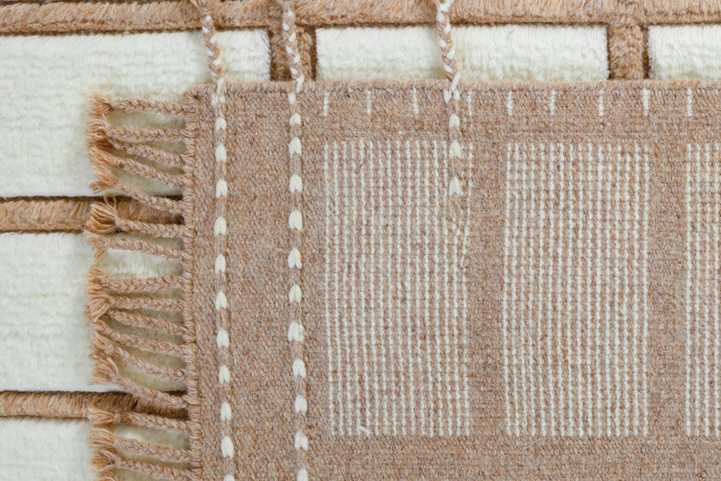 The Boho collection rug is hand-knotted by skilled artisans using the finest New Zealand wool. Known for its durability and natural softness, the wool creates a warm and inviting foundation. Each yarn is individually dyed by master craftsmen, giving the rug its unique depth and organic character.